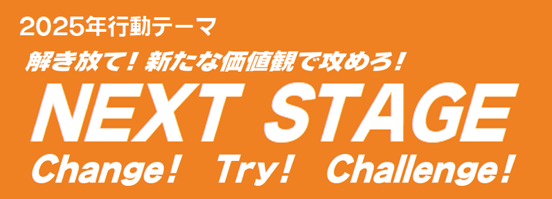 2025年の行動テーマ「 解き放て! 新たな価値観で攻めろ! NEXT STAGE Change!Try!Challenge!」「ありがとう NextStage ともに TOMONI Together 仲間とともに お客様とともに 地域社会とともに」を掲げ、本年も邁進してまいります。