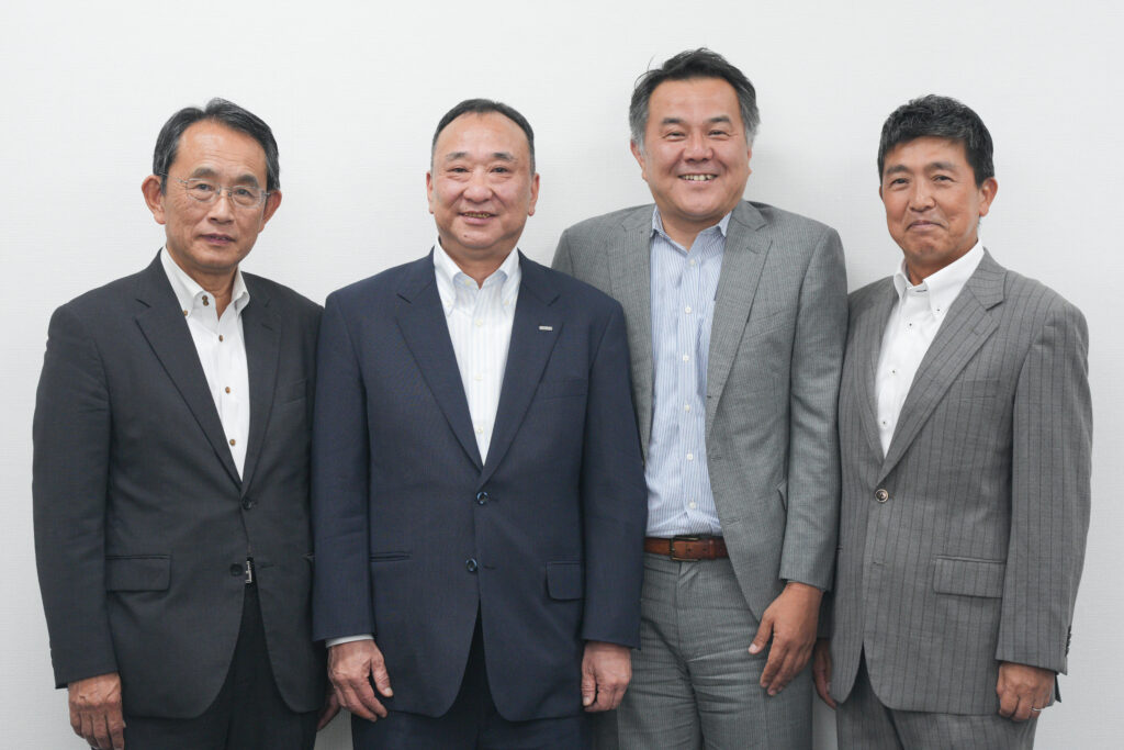左から 中部計機>中山社長、愛知計機>恒成社長、春日井流通マシン>大和田社長、愛知計機>山本常務取締役